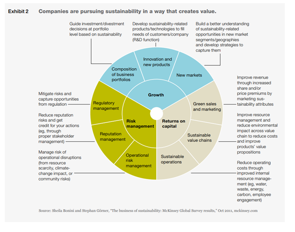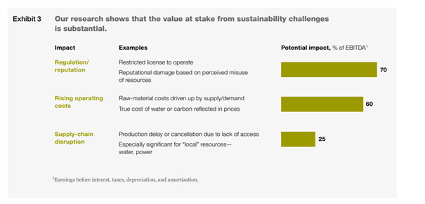 McKinsey reports that the value at stake from sustainability concerns can be as high as 70% of earnings before interest, taxes, depreciation, and amortization.